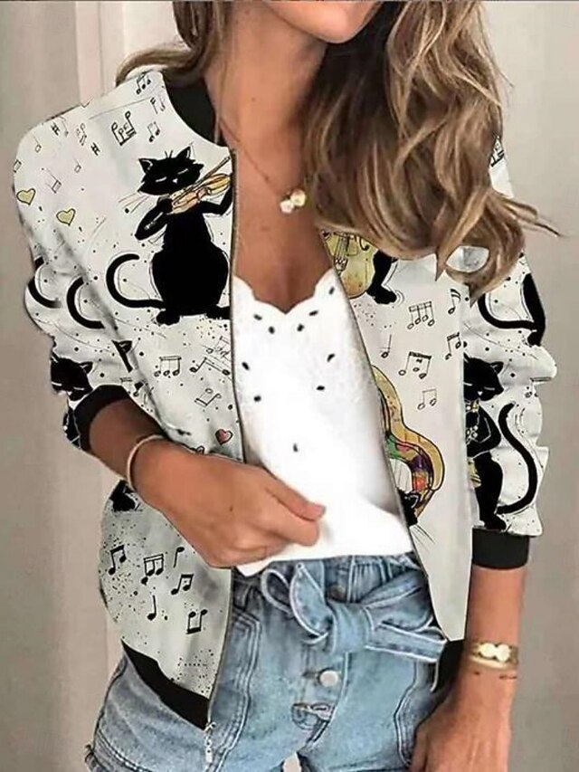 More information about Women's Casual Jacket Comfortable Breathable Zipper Print Casual Floral Vacation Street Daily Wear Going out Zipper Regular Stand Collar Regular Fit Long Sleeve Outerwear Black Red Blue Summer Spring