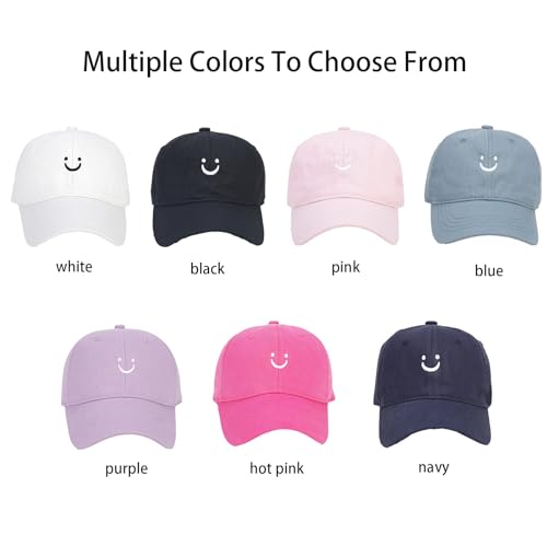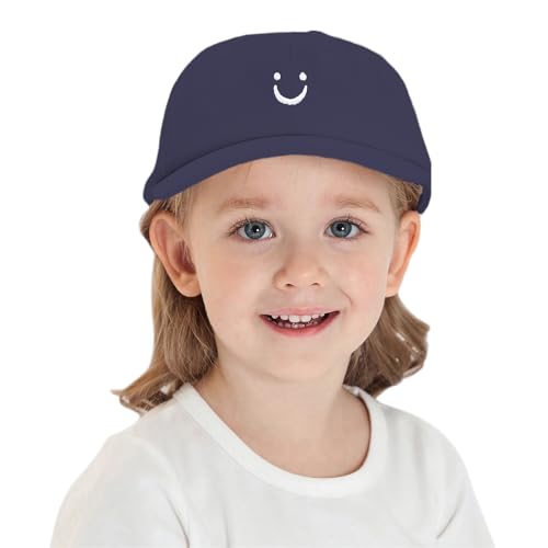 • Adjustable Baseball Cap: This navy baseball cap is designed in one size,circumference is about 21.2",recommend for 2-8 aged children.You can adjust the buckle of the kids trucker hat to best fit your child head size. The smile face hat is perfect for kids,toddler,little boys and girls to wear.