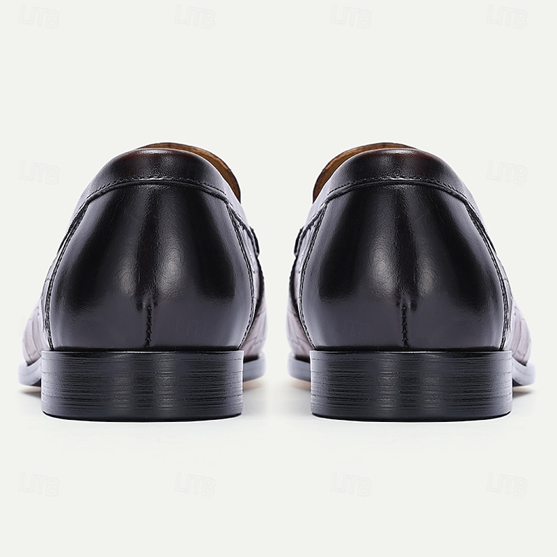 Highlights [Fabric] : Expertly crafted from 100% Italian full-grain cowhide leather, these men's loafers exhibit a luxurious feel and sophisticated style. The leather lining further enhances comfort and breathability, ensuring a premium wearing experience. [Style] : These loafers showcase a classic moccasin-style toe, perfectly balancing modern elegance with timeless design. The impeccable craftsmanship and attention to detail make these shoes a standout in any collection. [Design Highlights] : Featuring an elegant crocodile embossed pattern, these loafers are adorned with a distinguished metal buckle on the vamp, adding a touch of refinement and sophistication. The slip-on style ensures both ease of wear and a snug fit. [Occasions] : Ideal for versatile use, these loafers seamlessly transition from business casual settings to informal gatherings. Whether you're attending a formal event or enjoying a relaxed outing, these shoes complement a wide range of occasions with effortless style. [Size Notice] : Available in a comprehensive range of sizes, from US6 / EU39 / UK5 to US13 / EU46 / UK12, these loafers offer a perfect fit for nearly every wardrobe, ensuring style and comfort for all.