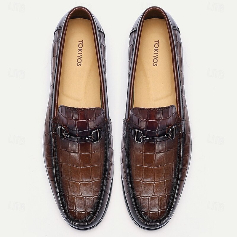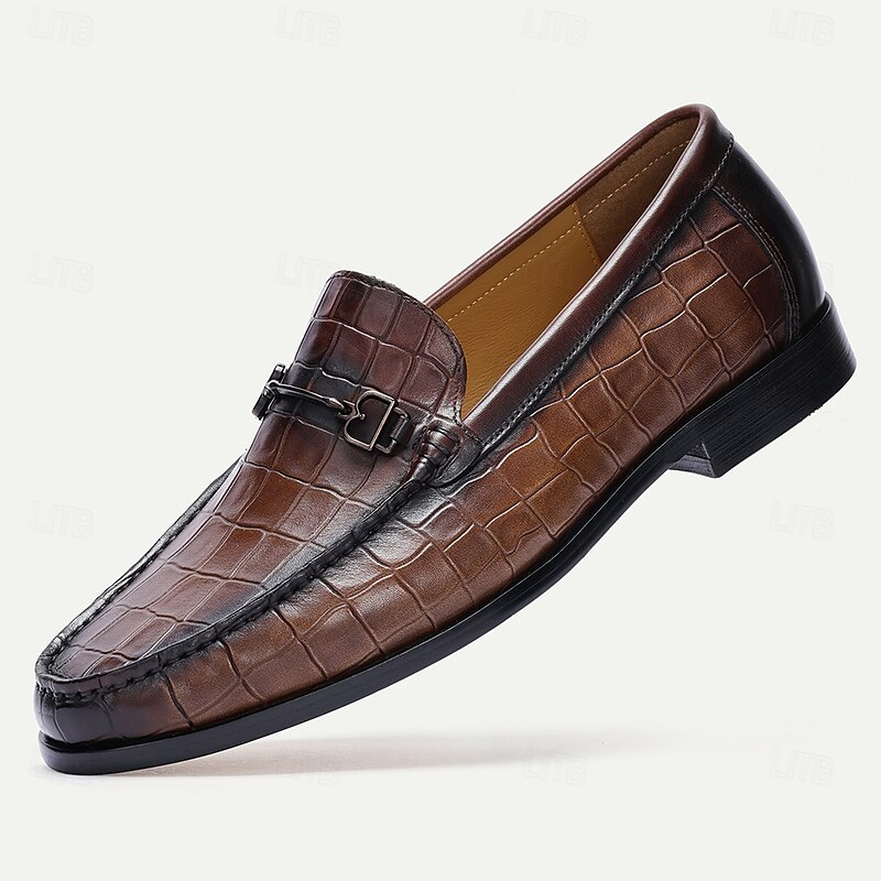 HOT ! Stylish Brown Leather Loafers with Crocodile Pattern and Bit Detail for Men | Perfect for Casual and Business Casual