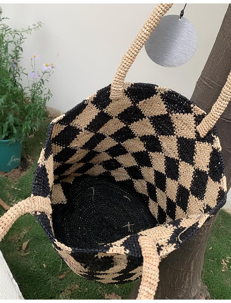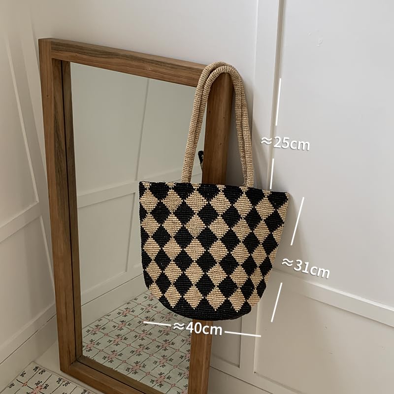 More information about Raffia Straw Woven Handbag Shoulder Bucket Bag Hollow Totes Clutch Hobo Beach Vacation Travel Large Versatile Chic Summer