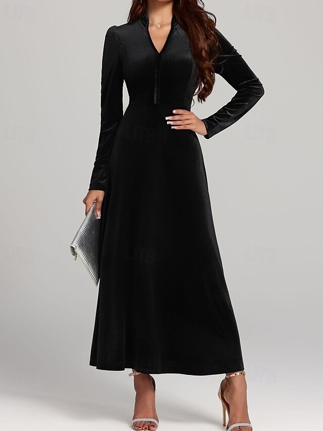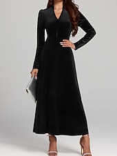 More information about Women's Midi Dress Black Dress Casual Dress Elegant Fashion Modern Outdoor Daily Evening Party Regular Fit Plain Long Sleeve V Neck Black Spring Winter Autumn