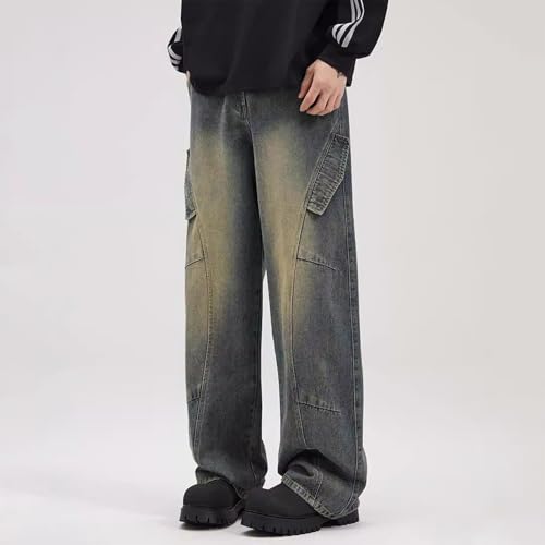 More information about Baggy Cargo Jeans for Men Teen Boys Y2k Hip Hop Loose Fit Jeans Seam Front Straight Leg Skater Streetwear Denim Pants