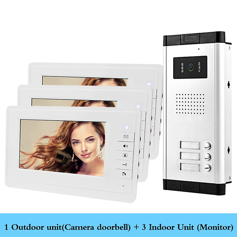 HOT ! Apartment Video Door Phone Intercom Doorbell Camera 7 Inch LCD Display Monitor for One to Three Family Camera 700TVLine CMOS 3.6mm Lens Hands-free