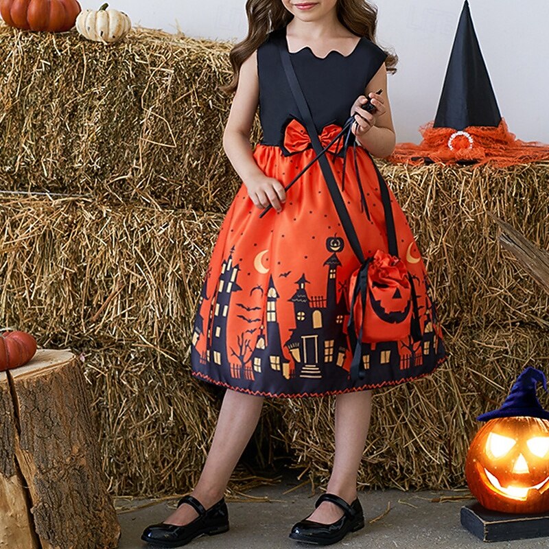 Halloween Girls' 3D Castle Dress Sleeveless Summer Spring Performance Party Birthday Beautiful Halloween Custome Kids 4-12 Years Party Dress Swing Dress A Line Dress Midi Polyester Regular Fit 6