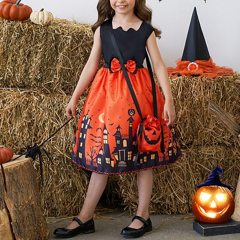HOT ! Halloween Girls' 3D Castle Dress Sleeveless Summer Spring Performance Party Birthday Beautiful Halloween Custome Kids 4-12 Years Party Dress Swing Dress A Line Dress Midi Polyester Regular Fit