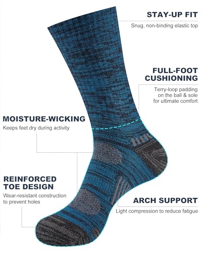 • Arch support & stay-up fit :Elastic arch compression keeps socks in place, reduces slippage, and supports your feet during movement. Non-binding crew length design fits comfortably under work boots or hiking boots.