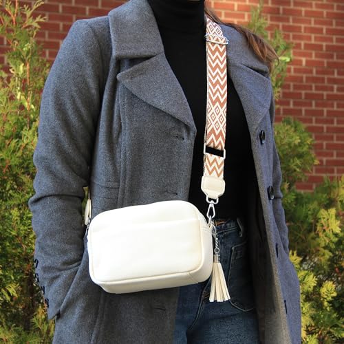 • VERSATILE, ADJUSTABLE STRAPS: Switch up your look effortlessly! Includes two interchangeable straps - a sleek vegan leather strap for classic vibes and a bold patterned strap for added flair. Fully adjustable for crossbody or shoulder wear.