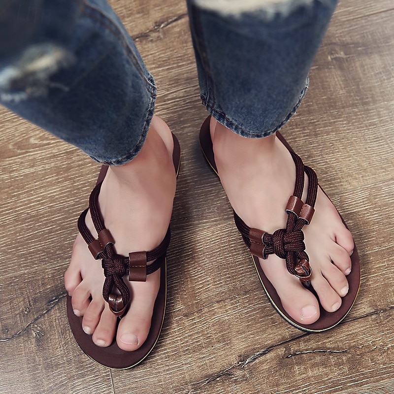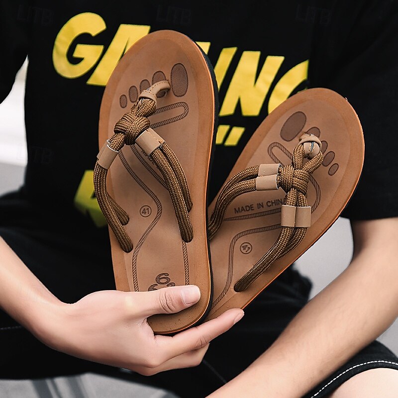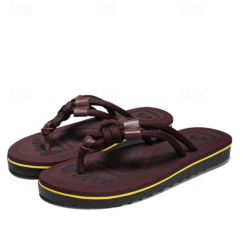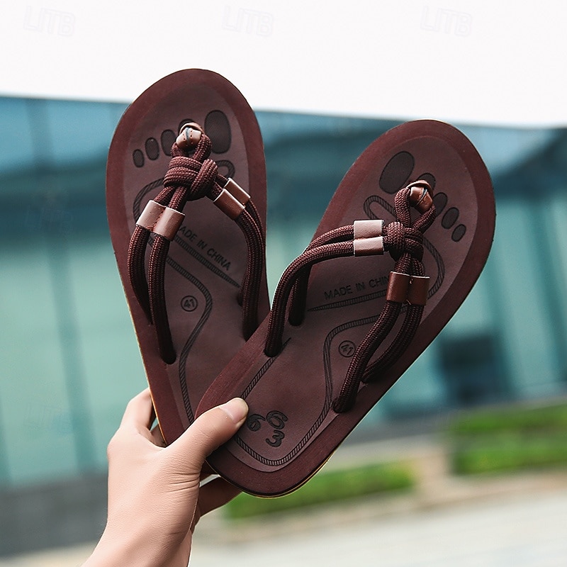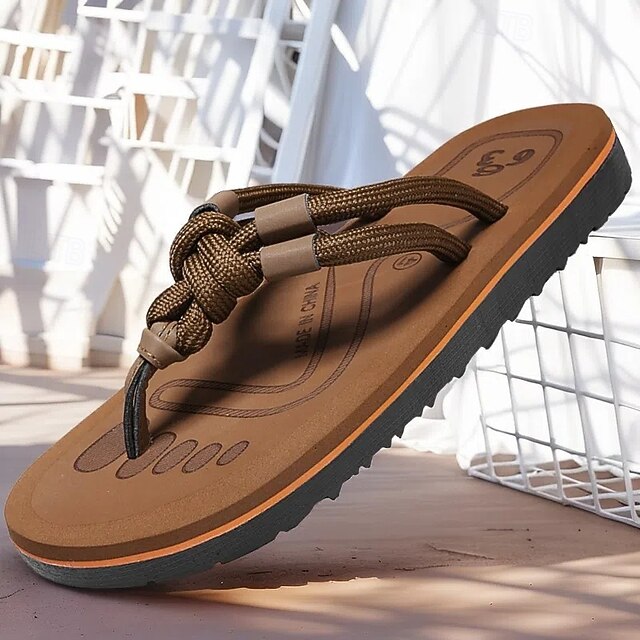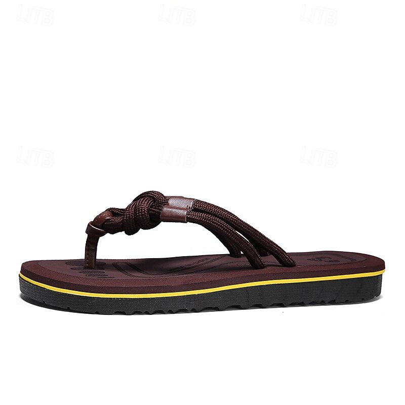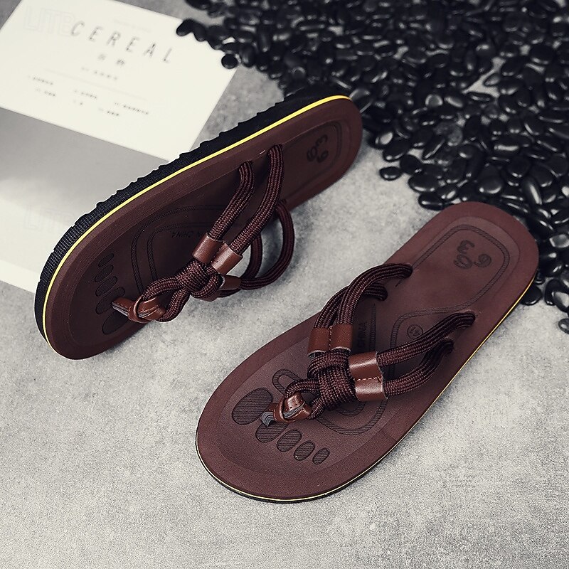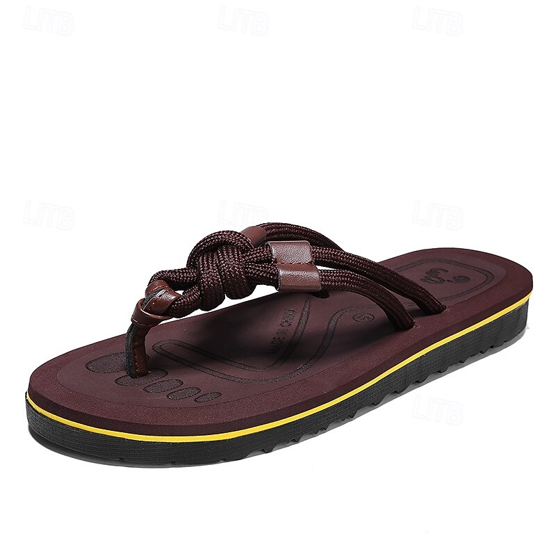HOT ! Men's Brown Rope-Style Flip-Flops with Cushioned Sole – Boho-Inspired Summer Sandals for Coastal Walks, Beaches and Casual Daily Use