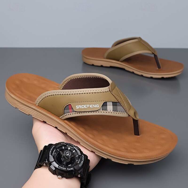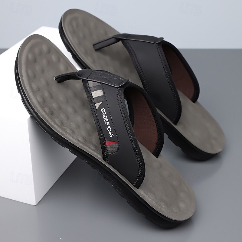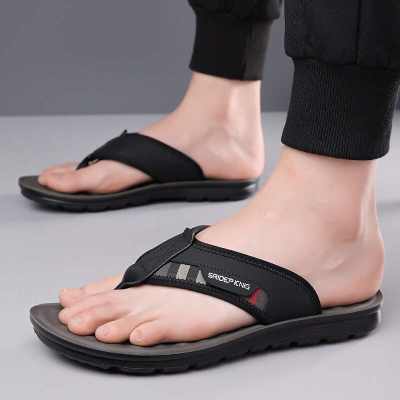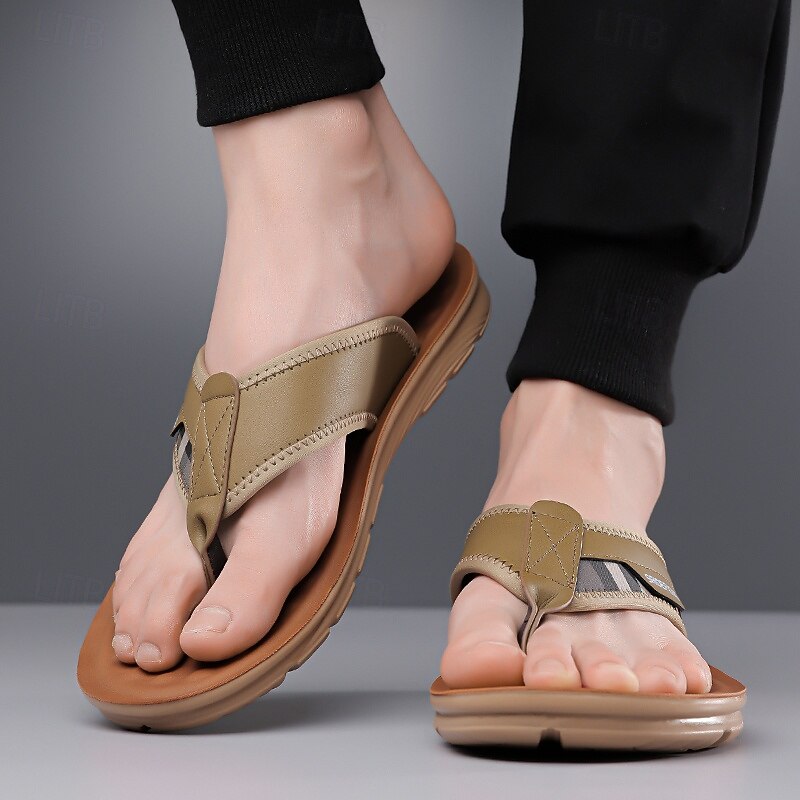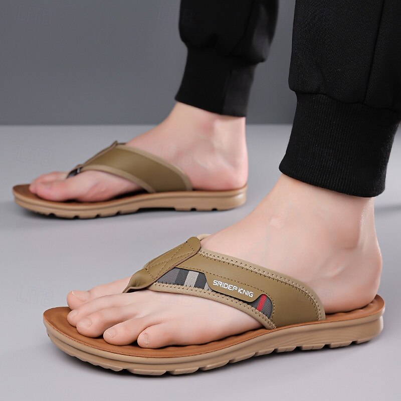 HOT ! Men's Army Green Flip Flops with Colorblock Webbing Strap Lightweight Slip-On Design for Beach Poolside and Summer Daily Use