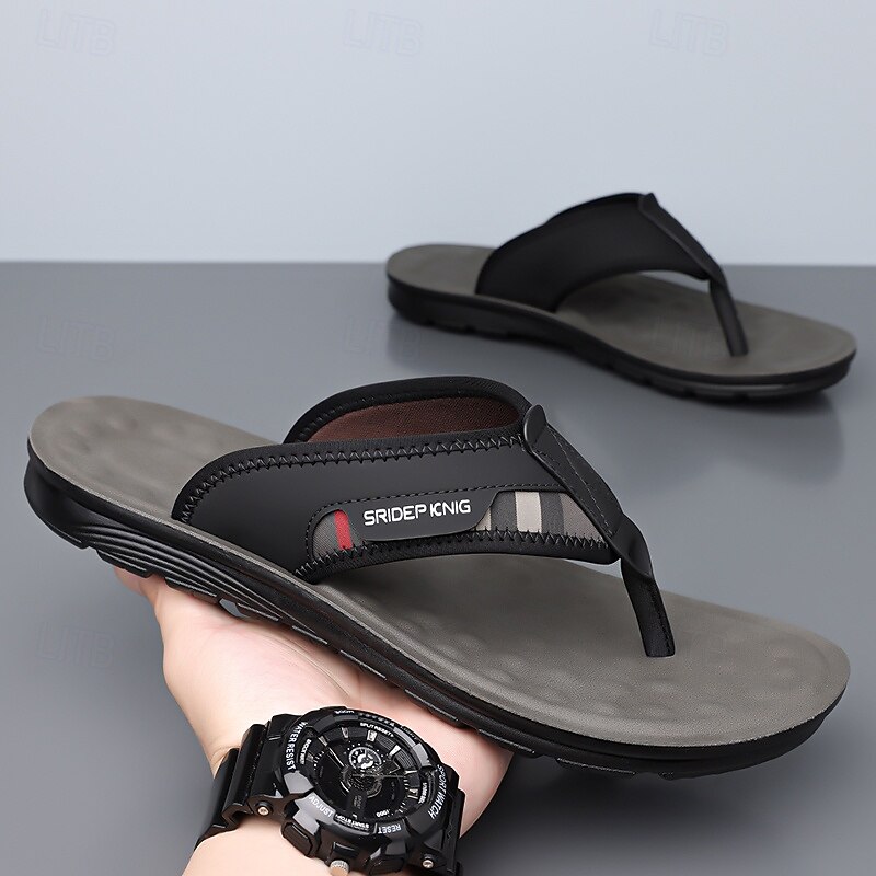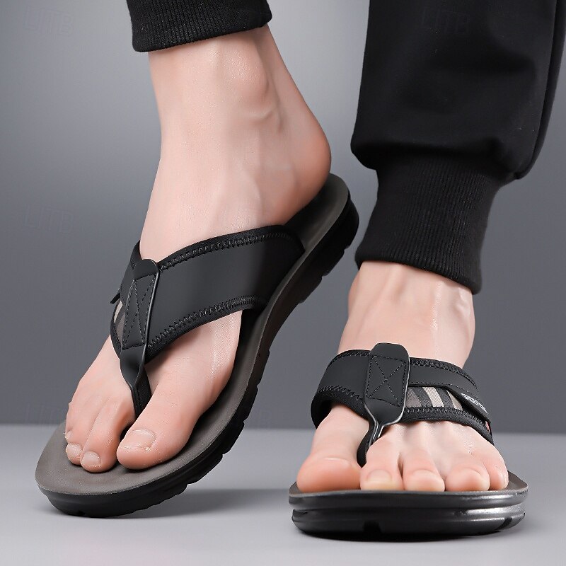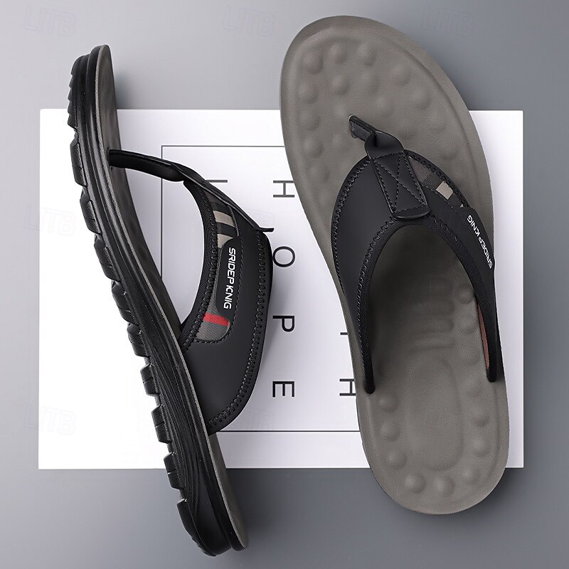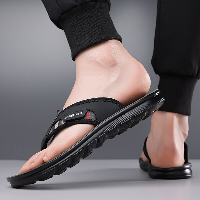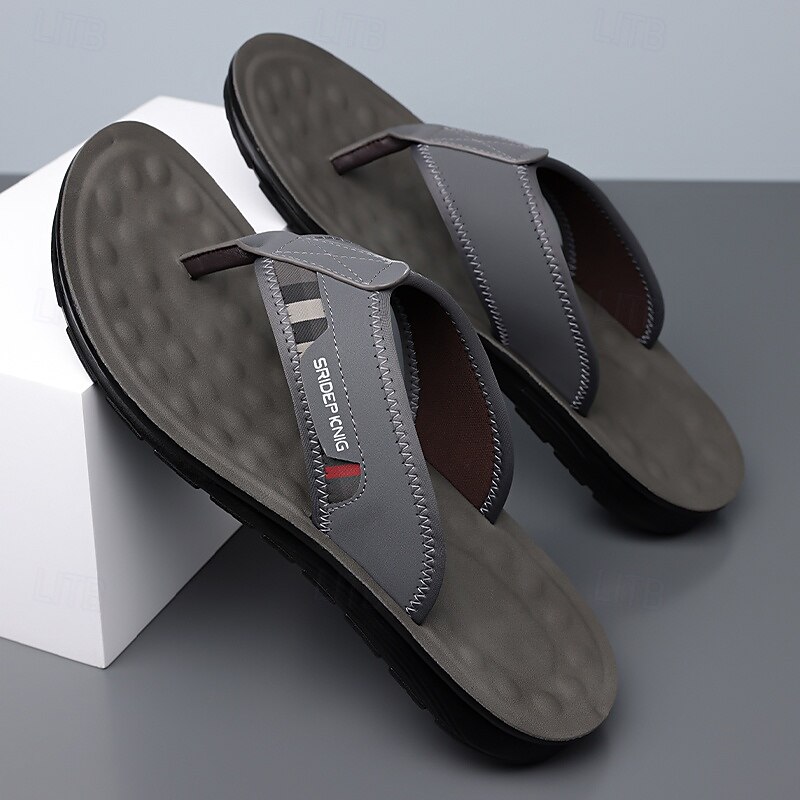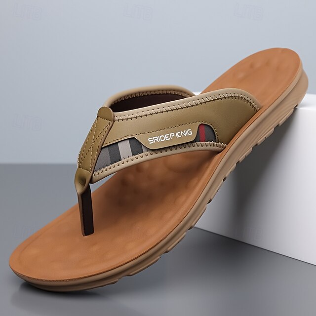 HOT ! Men's Army Green Flip Flops with Colorblock Webbing Strap Lightweight Slip-On Design for Beach Poolside and Summer Daily Use