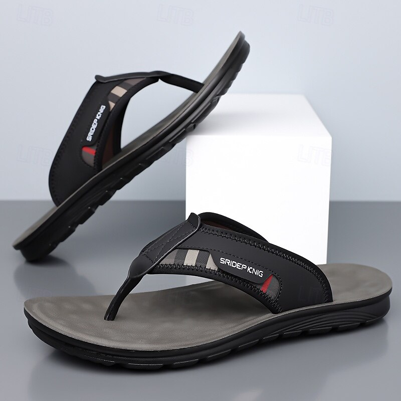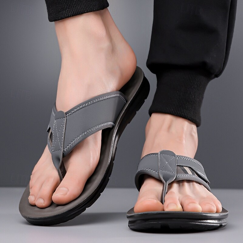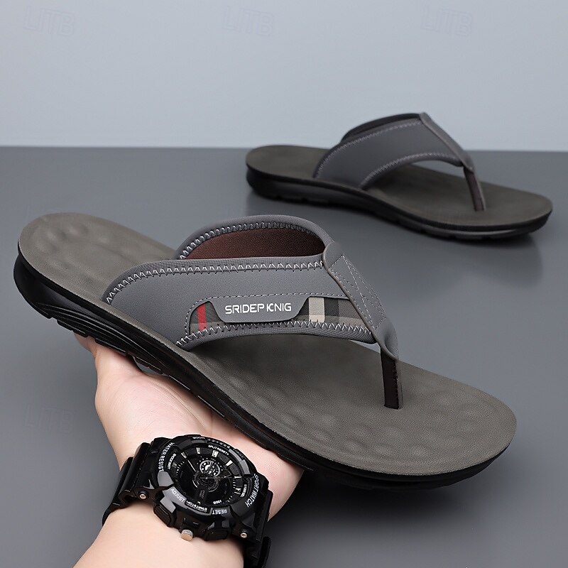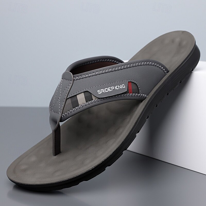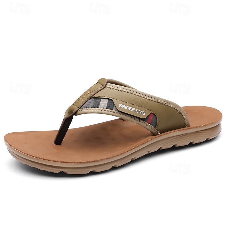 More information about Men's Army Green Flip Flops with Colorblock Webbing Strap Lightweight Slip-On Design for Beach Poolside and Summer Daily Use