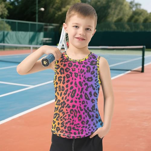 Leopard Rainbows Spots Tank Top for Children Sleeveless Casual Vest Tees Toddler Boy Shirts for Running Golf Hiking 3T 6