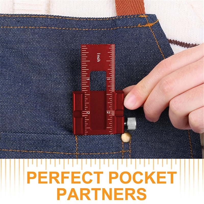 HOT ! Upgrade Your Woodworking with this Precision Pocket Ruler: Aluminum Slide Ruler with Inch and Metric Measurements, T-Type Scribing, and Square Layout Tool