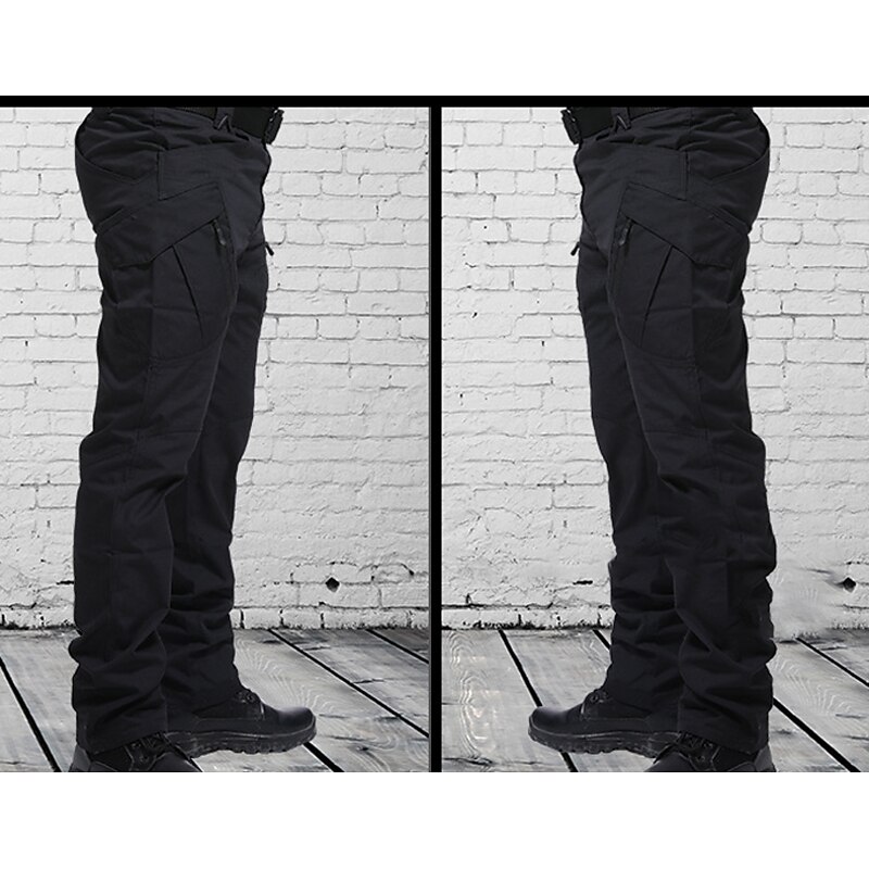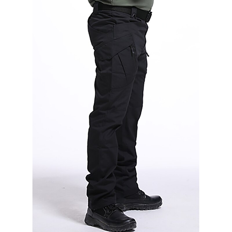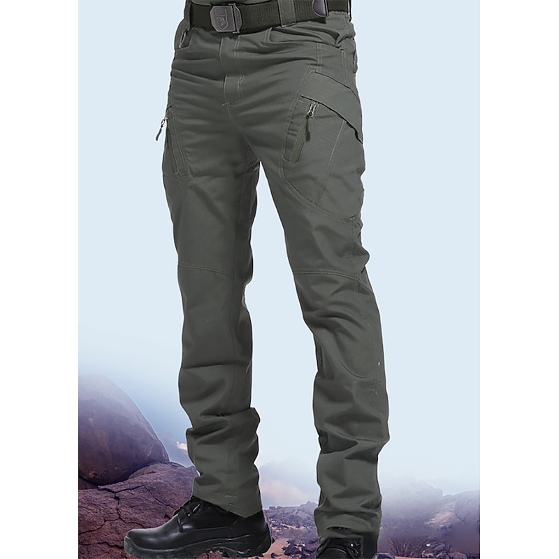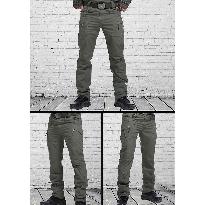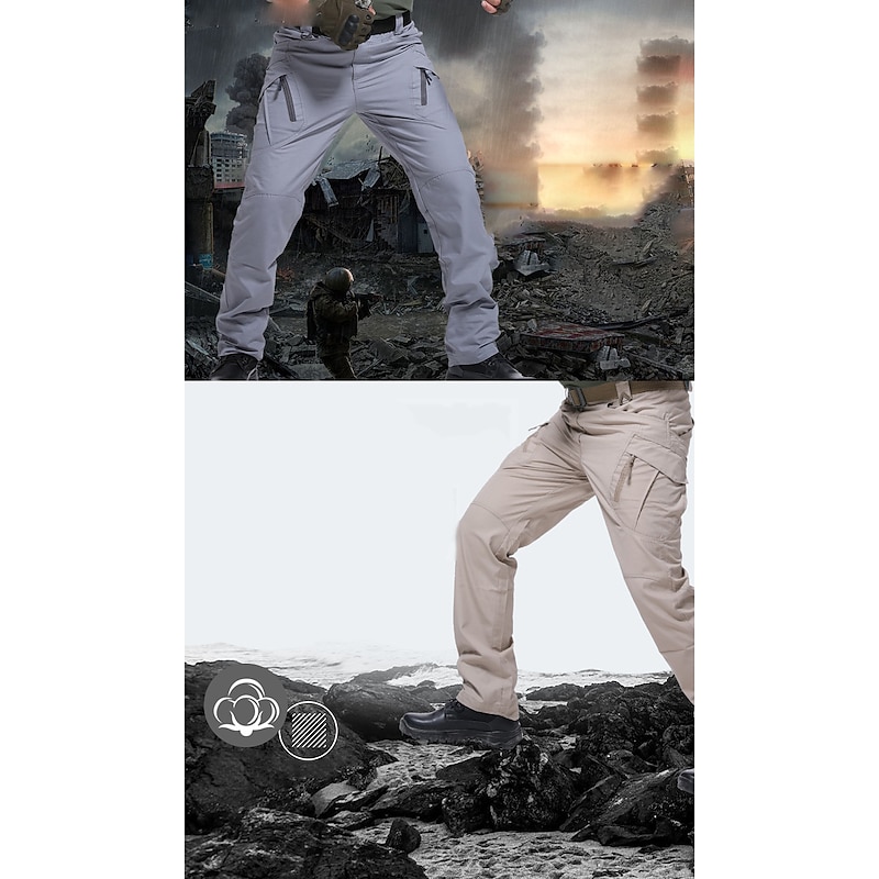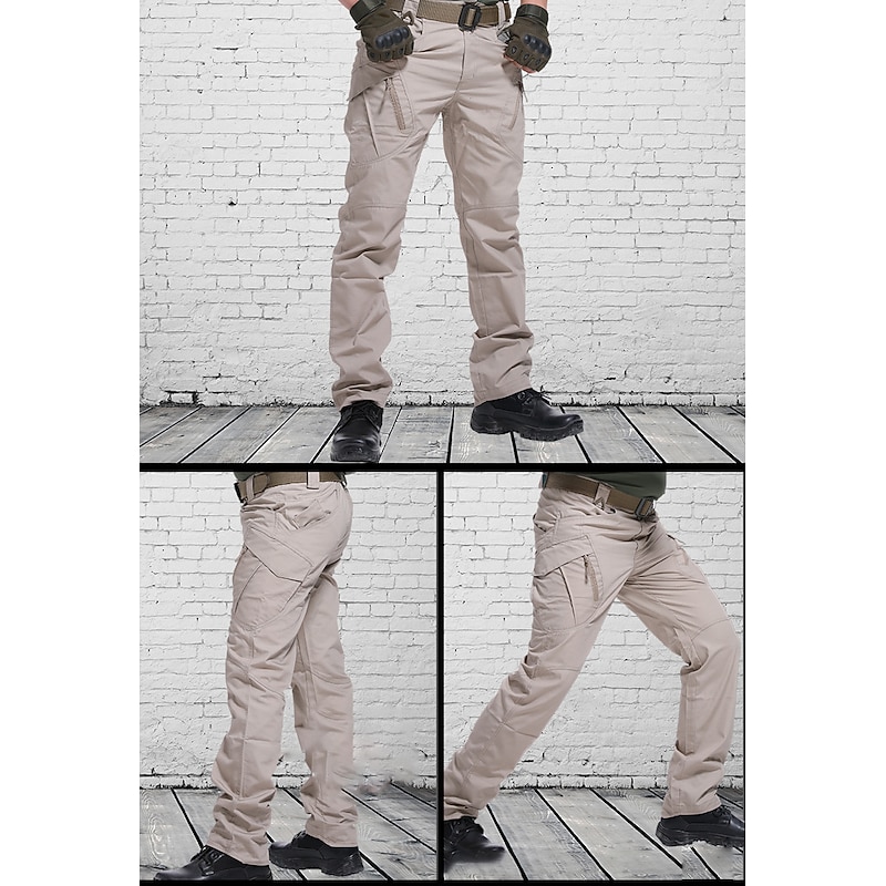 Highlights - The tactical multifunction pockets design includes specifically designed pockets for a flashlight and walkie talkie, as well as two expandable cargo pockets to carry all your essential equipment. - Water-resistant fabric with a durable water repellent finish to protect against light rain and stains. - Stay organized with multiple zipper pockets to securely store your phone, keys, credit cards and other personal belongings. - Enjoy enhanced movement with an elastic waistband, widened belt loops, strengthened crotch, and slope type leg cuffs. - Durable double and triple-needle stitching ensures long-lasting wear. - Made of cotton with quick-dry, windproof, and multi-pocket functions, perfect for military, tactical, or work wear. - Includes 9 pockets in total, including large back pockets with a small internal pocket and two internal zipper closure pockets on both cargo pockets.