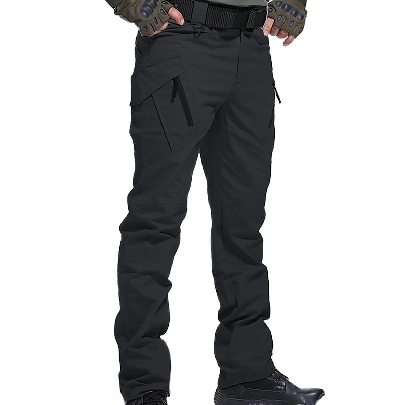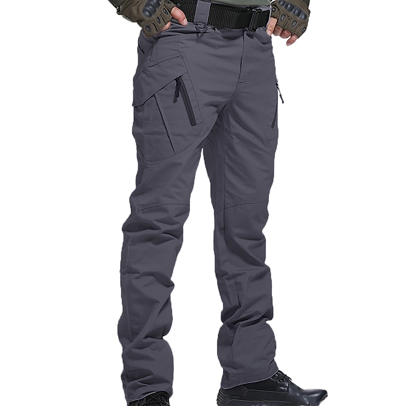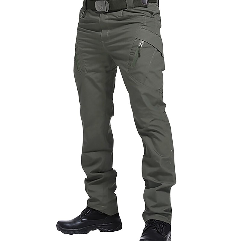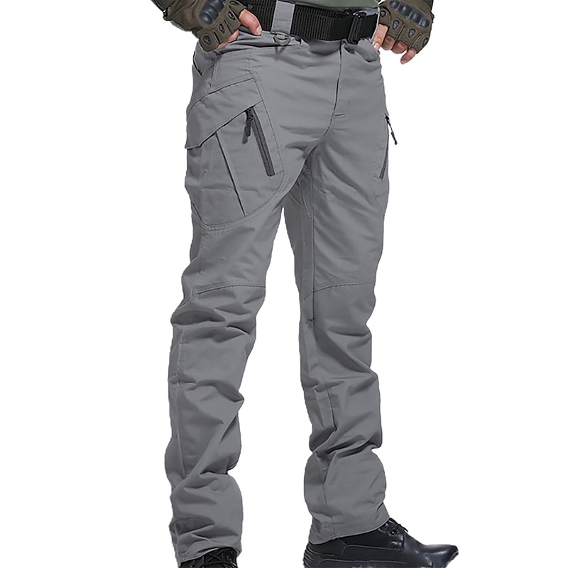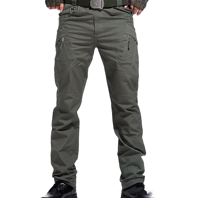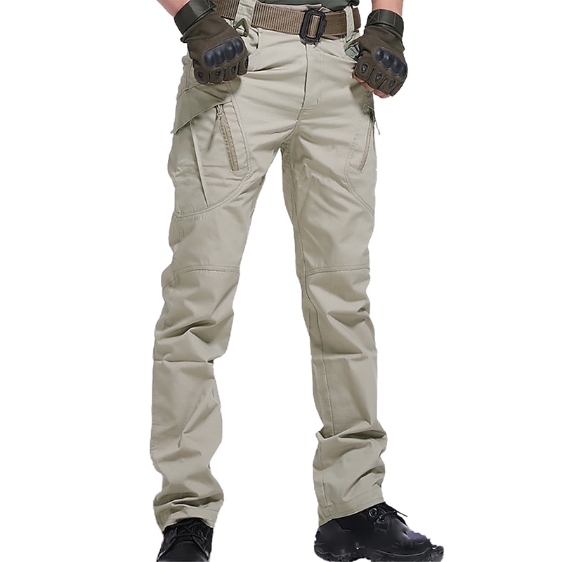 Highlights - The tactical multifunction pockets design includes specifically designed pockets for a flashlight and walkie talkie, as well as two expandable cargo pockets to carry all your essential equipment. - Water-resistant fabric with a durable water repellent finish to protect against light rain and stains. - Stay organized with multiple zipper pockets to securely store your phone, keys, credit cards and other personal belongings. - Enjoy enhanced movement with an elastic waistband, widened belt loops, strengthened crotch, and slope type leg cuffs. - Durable double and triple-needle stitching ensures long-lasting wear. - Made of cotton with quick-dry, windproof, and multi-pocket functions, perfect for military, tactical, or work wear. - Includes 9 pockets in total, including large back pockets with a small internal pocket and two internal zipper closure pockets on both cargo pockets.