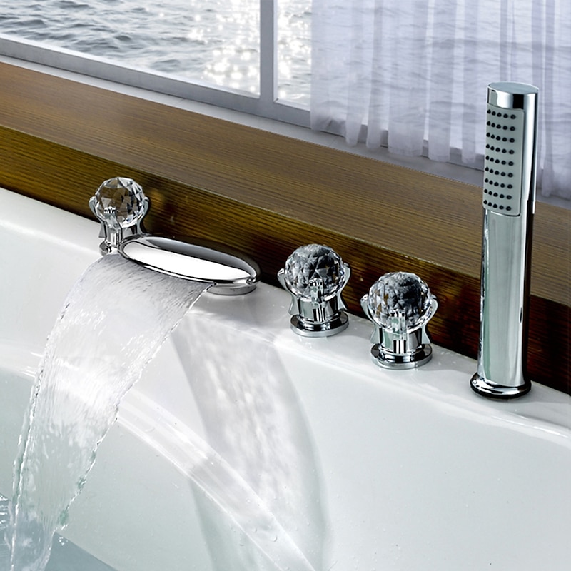 HOT ! Bathtub Faucet - Contemporary Chrome Roman Tub Brass Valve Bath Shower Mixer Taps