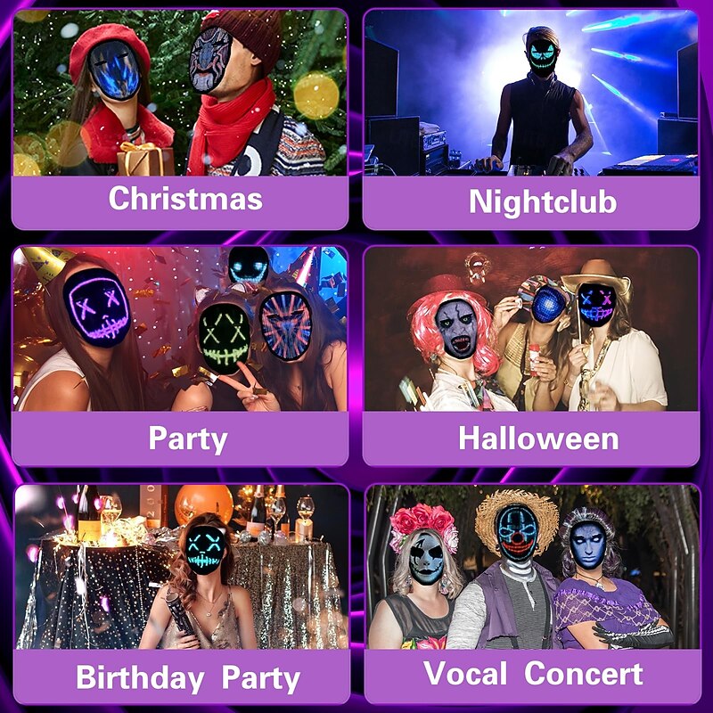 Led Mask with Rechargeable Bluetooth Compatible App Controlled Customizable Shining Mask Lighted Face Transforming Mask Unisex for Halloween Carnival Party Club 10