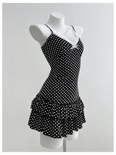 More information about MakeMeChic Women's Polka Dots Lace Cami Dress V Neck Tiered Ruffle Y2k Mini Dresses