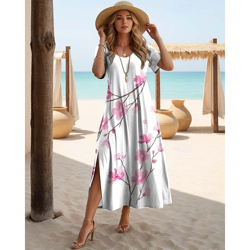 HOT ! Women's Maxi Dress Casual Dress T Shirt Dress Tee Dress Sundress Hawaiian Date Regular Fit Floral Short Sleeve Crew Neck Black White Purple Orange Summer