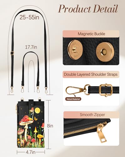 Phone Purse Crossbody Bags for Women - Leather Small Cell Phone Wallet RFID Blocking with Card Slots & Adjustable Strap Cute Designer Aesthetic Cross Body Bags, Moon Mushroom 6