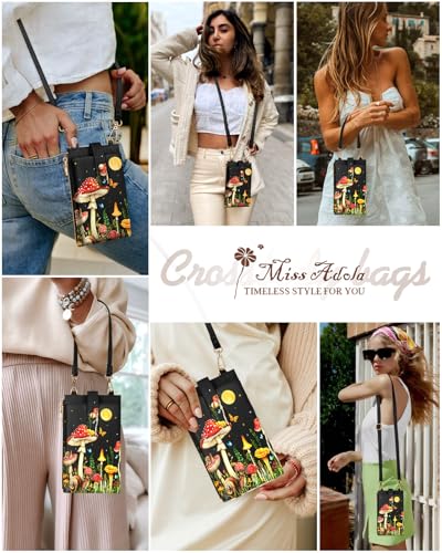 HOT ! Phone Purse Crossbody Bags for Women - Leather Small Cell Phone Wallet RFID Blocking with Card Slots & Adjustable Strap Cute Designer Aesthetic Cross Body Bags, Moon Mushroom