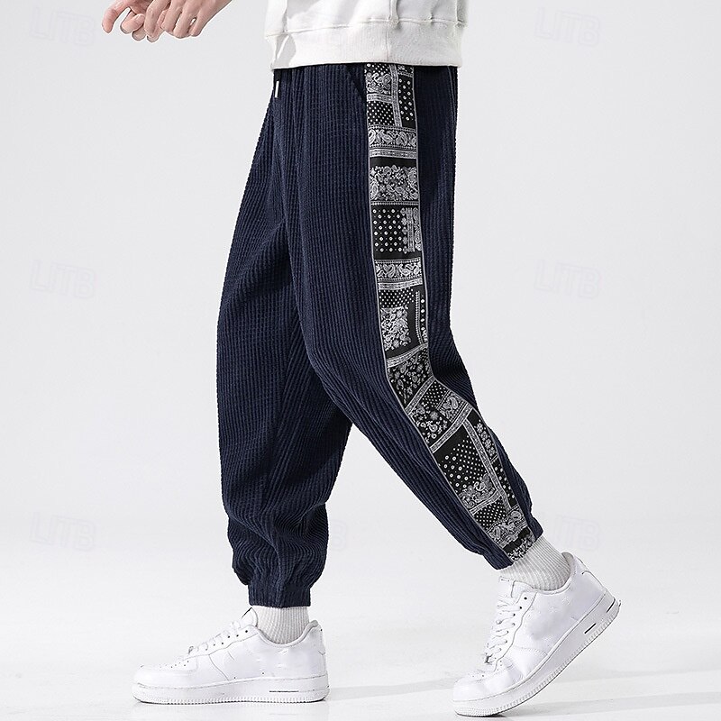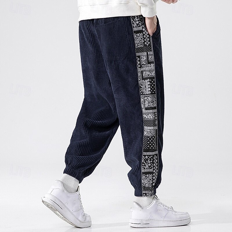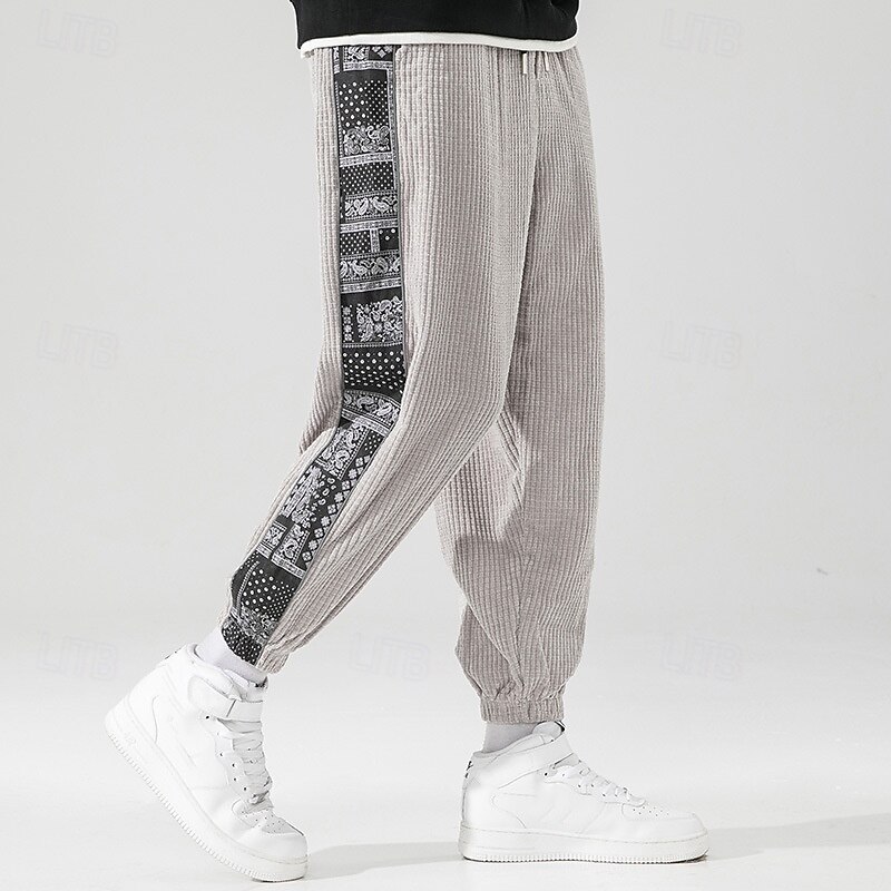 More information about Men's Athletic Pants Sweatpants Joggers Corduroy Pants Trousers Pocket Elastic Waist Drawstring Color Block Comfort Sports Outdoor Daily Ethnic Style Casual Black Light Grey Micro-elastic