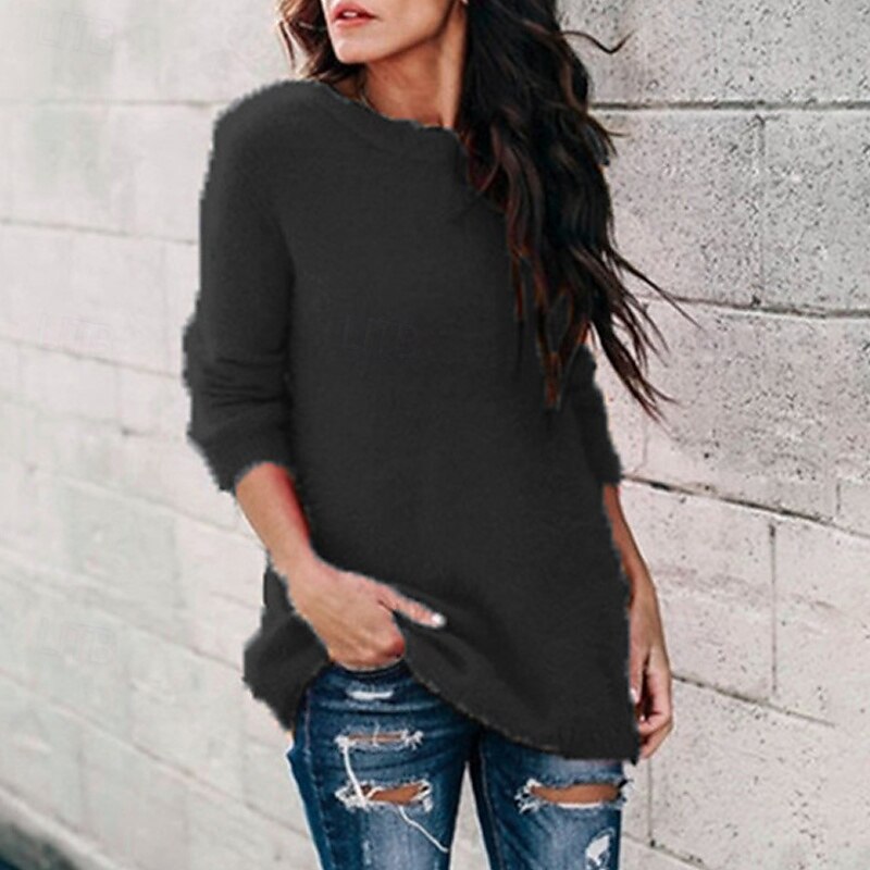 More information about Women's Sweater Pullover Streetwear Casual Pure Color Ribbed Crew Neck Knitted Long Sleeve Regular Tops Knit Outdoor Daily Weekend Black White Fall Winter