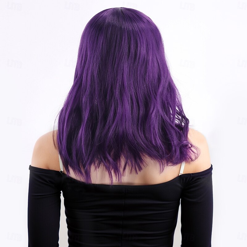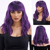 More information about Synthetic Wig Bouncy Curl Water Wave Layered Haircut Neat Bang Machine Made Wig 16 inch A1 Synthetic Hair Women's Classic Thick Comfortable Purple