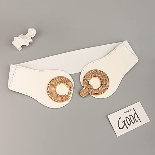 YOU&M Women's Leather Wide Elastic Waist Belt Classic with Large Gold Buckle for Corset Dress Belt 7