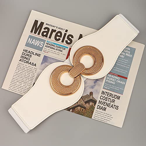 HOT ! YOU&M Women's Leather Wide Elastic Waist Belt Classic with Large Gold Buckle for Corset Dress Belt