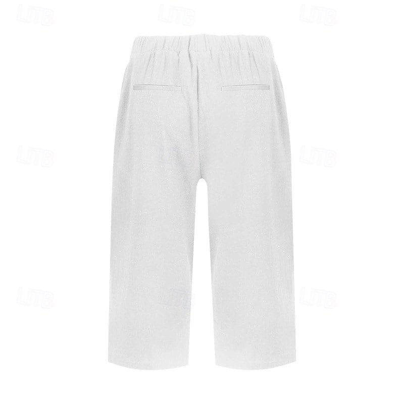 More information about Women's Capri Pants Cotton Linen Pants Slacks Streetwear Casual Calf-Length Natural Plain Pocket Breathability Soft Comfortable Micro-elastic Casual Daily Wear Black White Khaki Summer Spring Regular