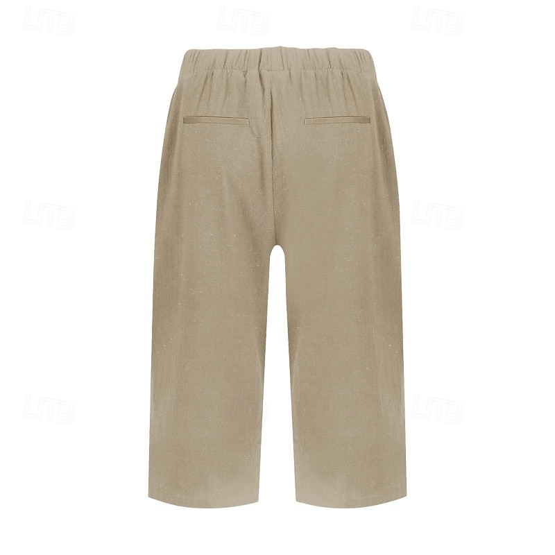 Women's Capri Pants Cotton Linen Pants Slacks Streetwear Casual Calf-Length Natural Plain Pocket Breathability Soft Comfortable Micro-elastic Casual Daily Wear Black White Khaki Summer Spring Regular 8
