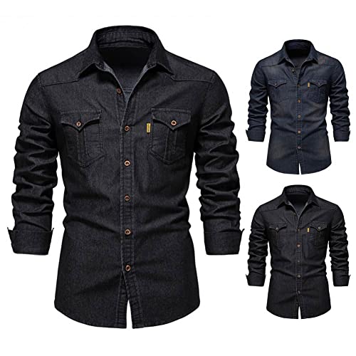 • HIGH QUALITY -- Cotton Blend, Long Sleeve Denim Shirts for Men, Perfect for Casual, Business, Makes You Look Handsome.