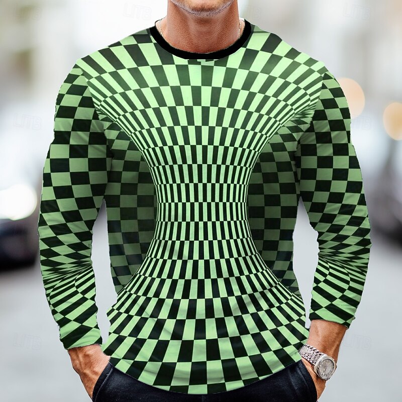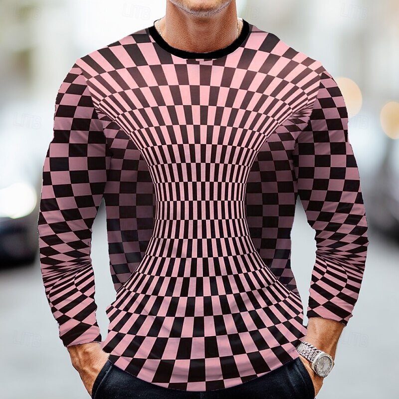 More information about Men's Checkered 3D T Shirt Long Sleeve T shirt 3D Print Crew Neck Shirt Fashion Exaggerated Street Casual Daily Yellow Pink Blue Summer Spring Fall Clothing Apparel S M L XL XXL XXXL