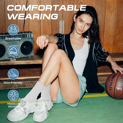 • FRESH MATERIAL: Experience all-day comfort with our women's crew socks, soft, breathable, and moisture-wicking to keep you fresh and dry during any activity, from running and hiking to workout and yard work.