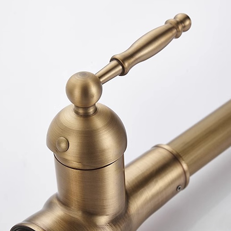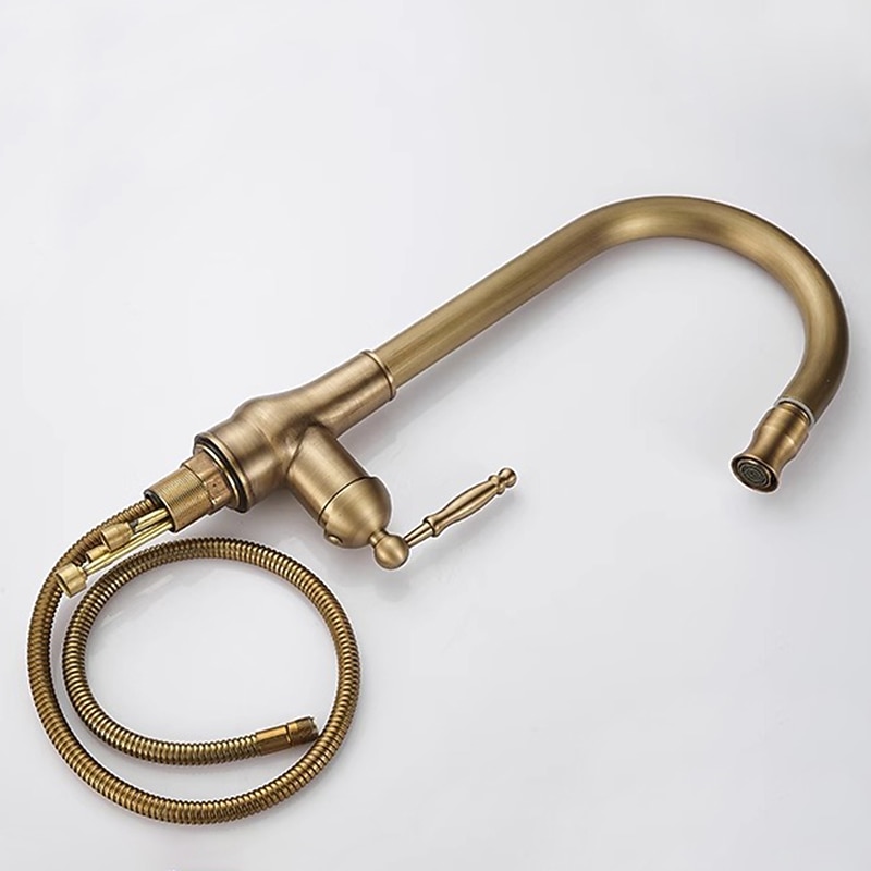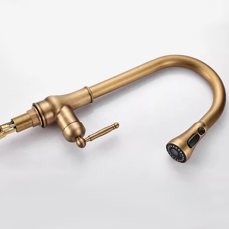 Kitchen Faucet Pull Out Sink Mixer Taps, 360 Degree 2 Mode Sprayer, Vintage Brass Vessel Tap with Cold and Hot Hose 1