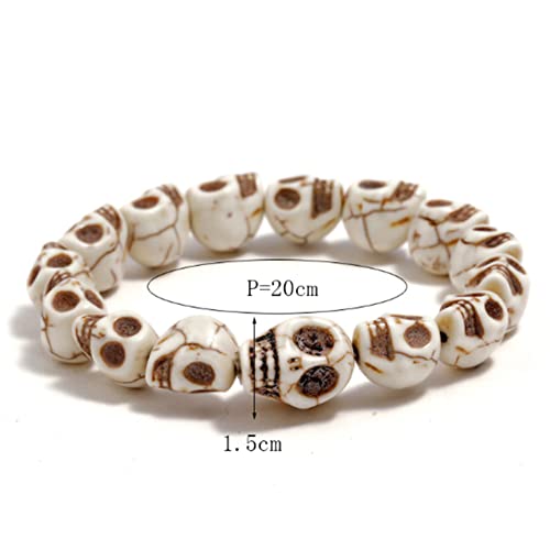 HOT ! yaozeio Skeleton Skull Bracelets for Men Women Punk White Turquoise Bead Bracelet Halloween Costumes for Women Accessories Halloween Gothic Bone Bracelet Gifts for Friend