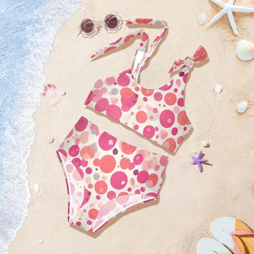 Pink Dot Minimalist Girls' 2 Piece Kids Bikini Set Beach Swimsuit Swimming Suits Cute Shoulder Strap 2