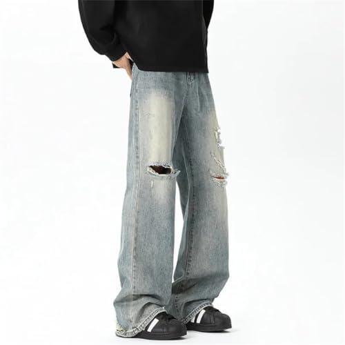 More information about Men’s Korean Style Denim Pants, Contrast Color, Hole Design, Wide Leg, Loose Male Jeans