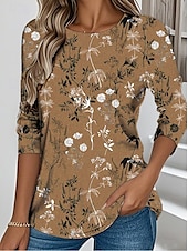 More information about Women's T shirt Long Sleeve Crew Neck Long Sleeve Tunic Floral Graphic Vintage Stylish Classic Round Neck Regular Tops Daily Print Blue Brown Gray Fall Prefall