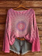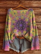 More information about Women's Sweater Casual Soft Tie Dye Stylish Modern Long Sleeve Crew Neck Regular Tops Daily Holiday Print Yellow Pink Blue Spring Fall Winter
