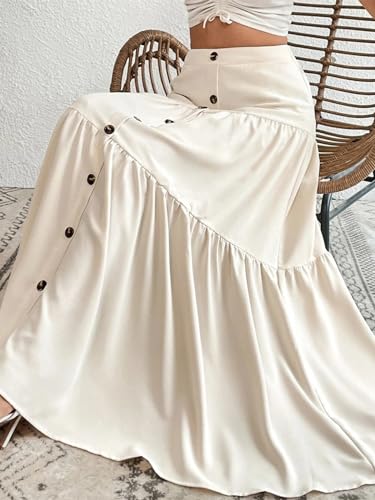 More information about Women's Casual Elastic High Waist Button Tiered Ruffle Hem Long Maxi Skirt