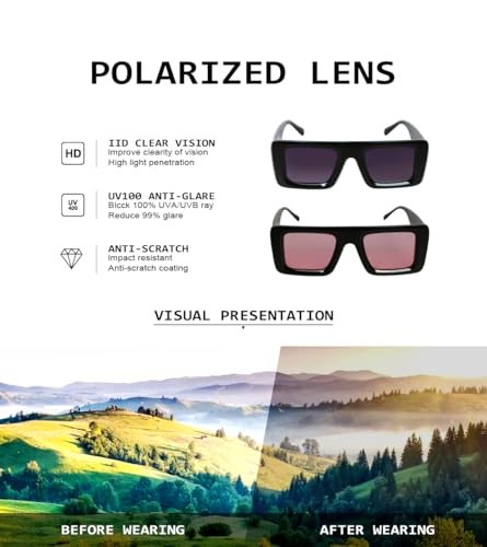 More information about square black frame retro style sunglasses, gradient lenses, UV400 protection, men's and women's sunglasses