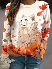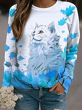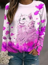 More information about Women's Pullover Graphic Cat Casual Long Sleeve Crew Neck Regular Tops Casual Pink Blue Orange Green Spring Fall Winter