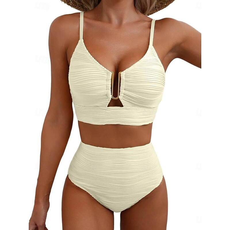 More information about Women's Swimsuits Bikini 2 Piece Briefs Swimsuit Backless Slim High Waisted Vacation Beach Wear Solid Color V Neck Sleeveless Bathing Suits