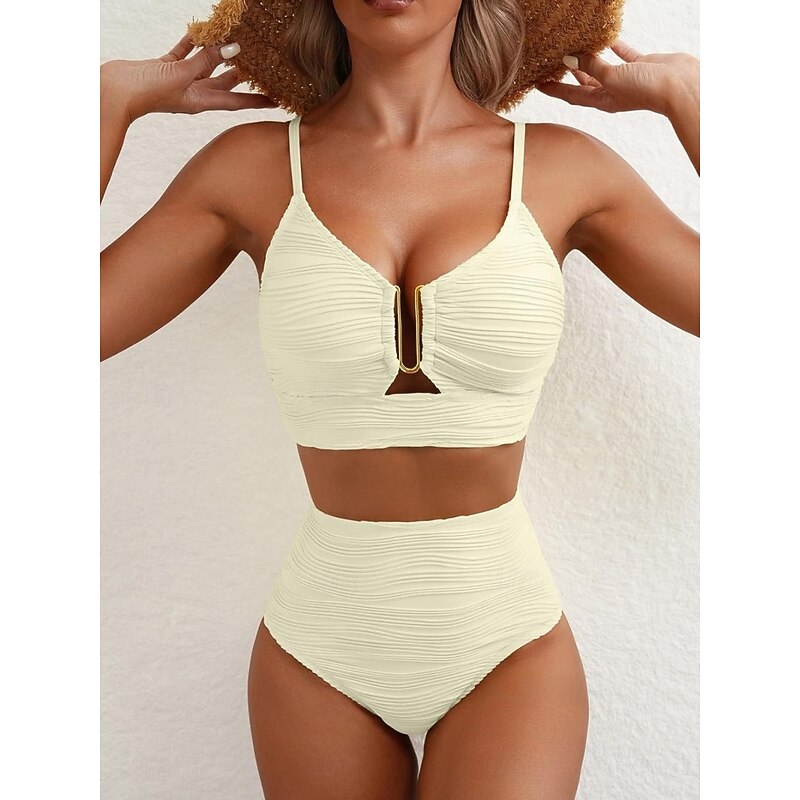 HOT ! Women's Swimsuits Bikini 2 Piece Briefs Swimsuit Backless Slim High Waisted Vacation Beach Wear Solid Color V Neck Sleeveless Bathing Suits