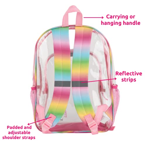 More information about CLUB LIBBY LU Rainbow Clear Backpack for School, 16 inch Stadium Approved Transparent Bag with Matching “Be Kind” Pencil Pouch, 3 Piece Set