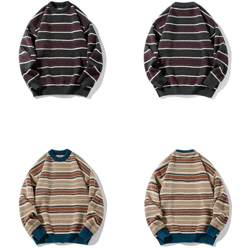 More information about Men's Vintage Sweater Oversized Cable Knit Crewneck Pullovers Casual Long Sleeve Striped Sweaters