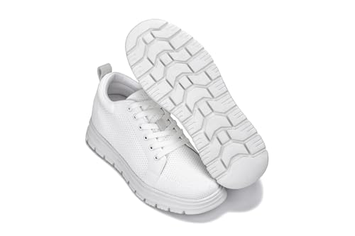 CALTO Men's Invisible Height Increasing Elevator Casual Shoes - White/White Sole Light-Weight Lace-up Knitted Casual Sporty Sneakers - 2.4 Inches Taller - X2321 - Size 10 D(M) US 4